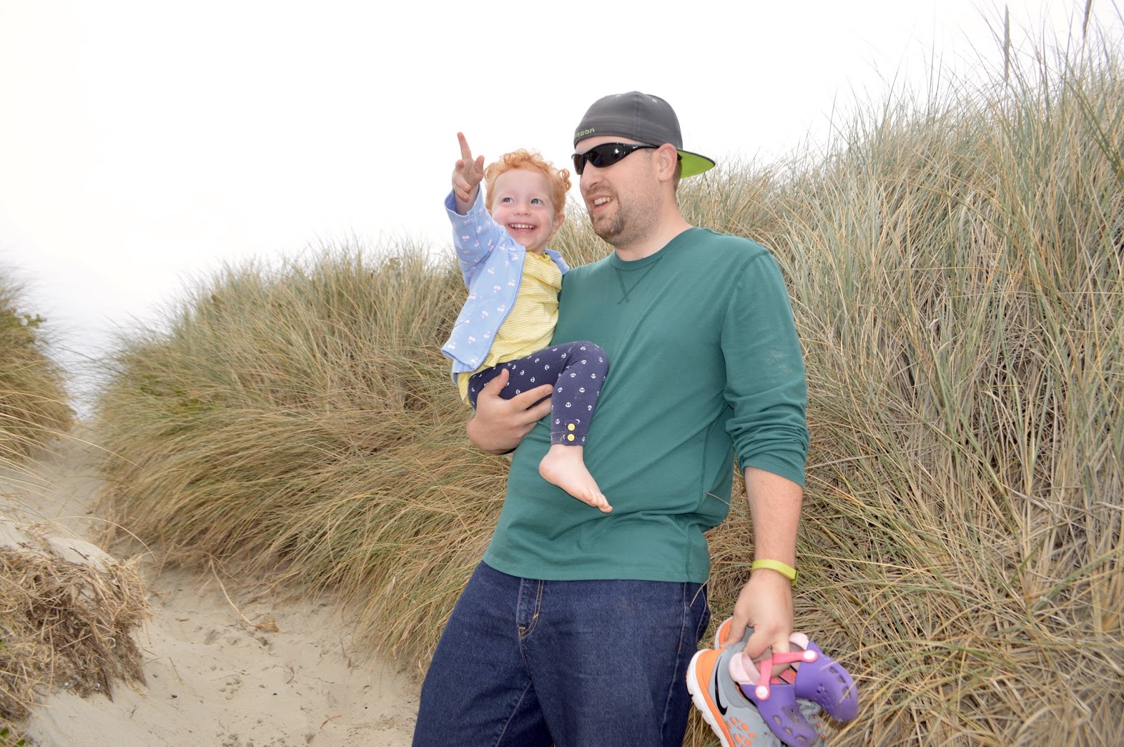 After we played at the dunes we came back to the camp site and Olivia took a nap. When we got up from the nap, it was beginning to get overcast and we decided to go to the ocean. It took a while to drive into where we could walk into a beach. We parked and then had to go up a big hill to the sand dunes and then run down to get to the ocean.