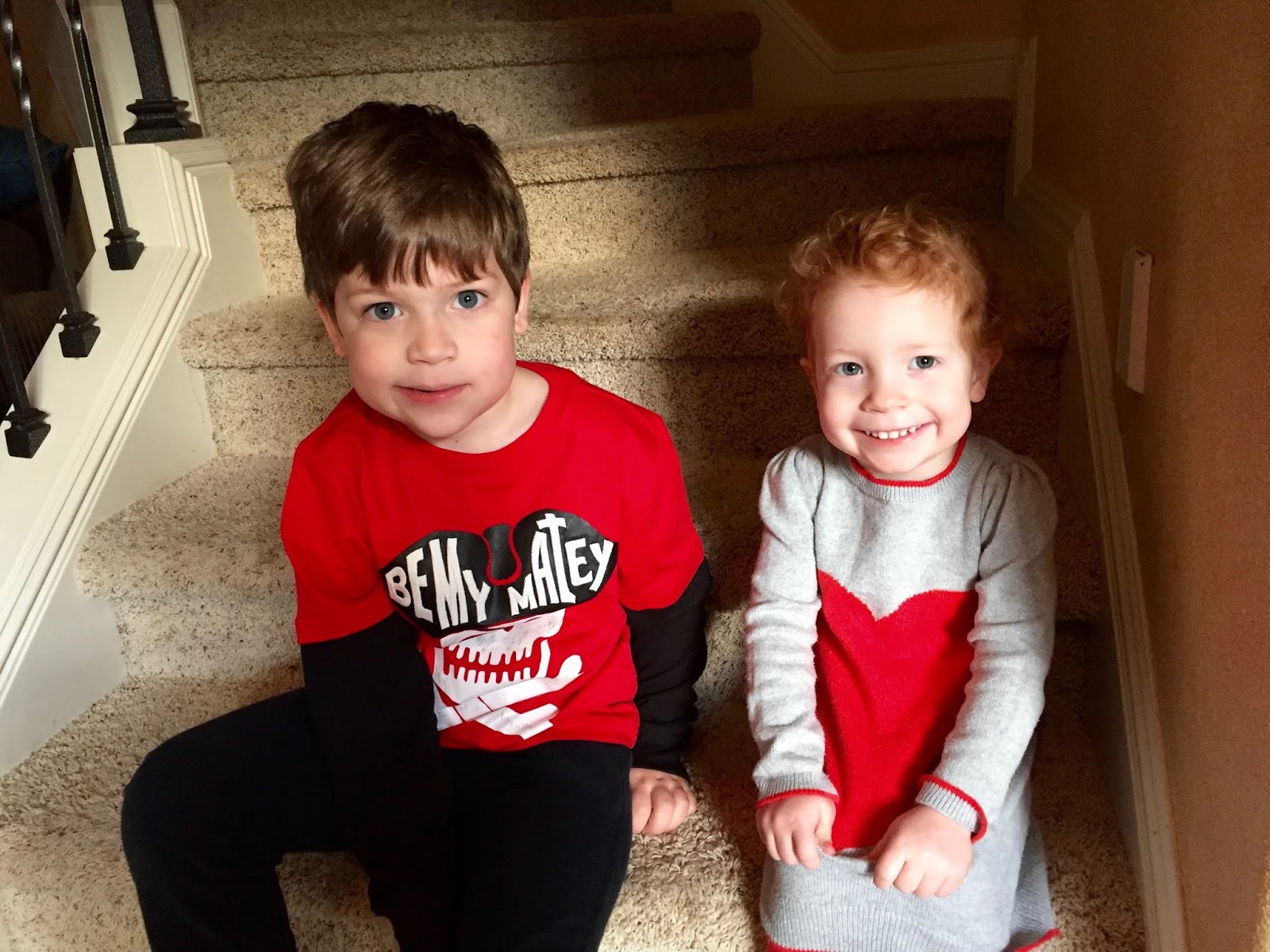 All dressed up for Valentine's day-Brandon's shirt says "Be My Matey"